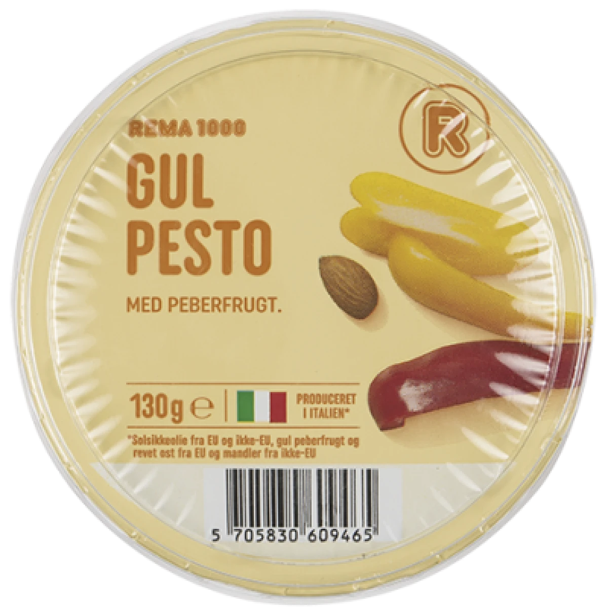 REMA 1000 gul pesto med peberfrugt og mandler er perfekt i en pastaret og i en sandwich eller panini.