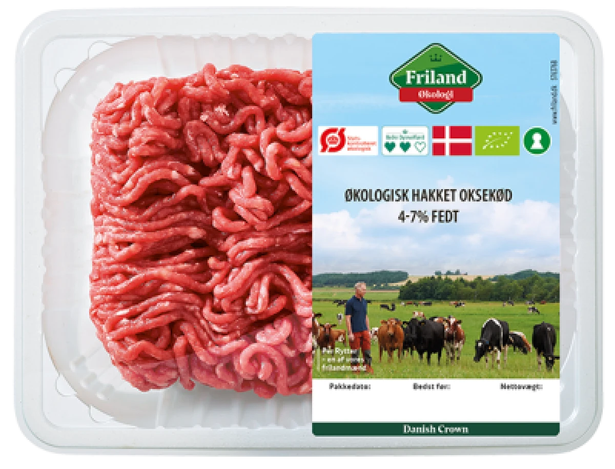 Friland hakket magert dansk økologisk oksekød 4-7%.