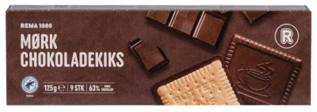 Med 63 % mørk chokolade med mindst 50 % kakaotørstof.