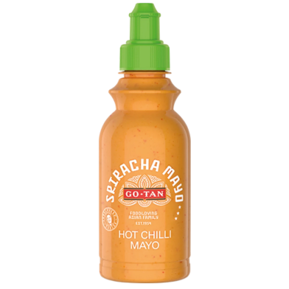 Sriracha Mayo fra Go-Tan er en cremet mayonnaise med chili, som har en stærk og krydret smag.